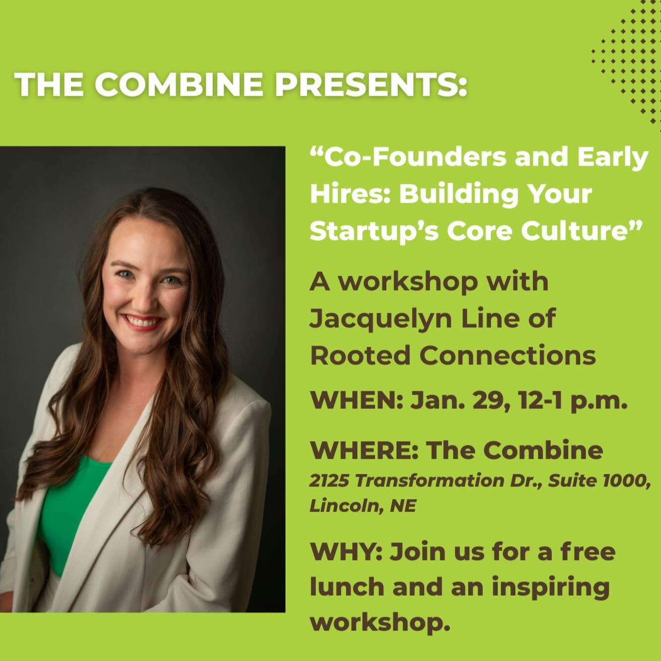 Join us for a free lunch & learn focused on building core culture through intentional co-founder and early hire selection. Learn practical frameworks to build a strong, values-aligned startup culture from the very beginning. Join us for this free workshop and enjoy lunch from The Combine.